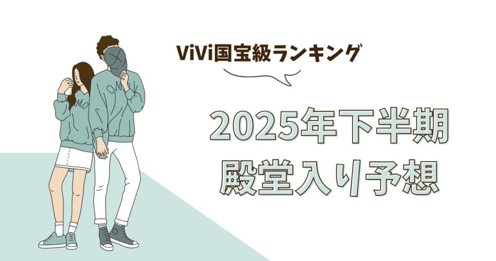 毎年、SNSをざわつかせるViViの「国宝級イケメンランキング」。2025年は記念すべき10周年を迎え、 上半期では道枝駿佑さんがNOW部門で殿堂入りを果たしました。 この記事では、ランキングの仕組みと、2025年下半期に殿堂入りが期待される人物を予想したい... -