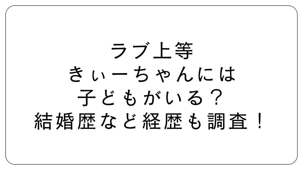 ラブ上等きぃーちゃんには子どもがいる?結婚歴などの経歴も調査!