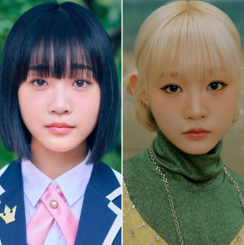 - 左側の写真…過去(日プ女子時代):ナチュラルな鼻筋、メイクも控えめ