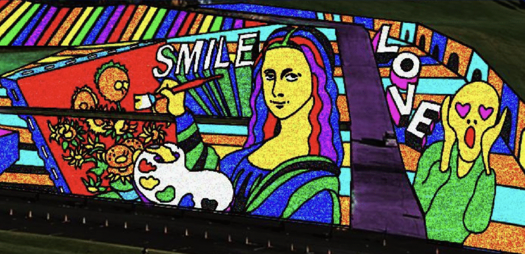 芝生広場にはモナリザやムンクなどの有名絵画をポップに再構成したり、